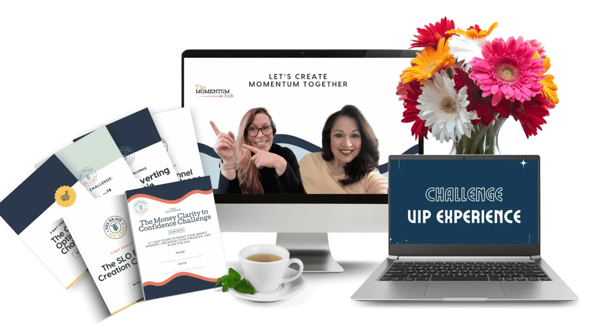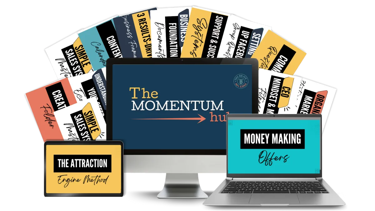 The Momentum Hub Core is a coaching-infused membership that gives you the exact frameworks, tools, and accountability to gain: